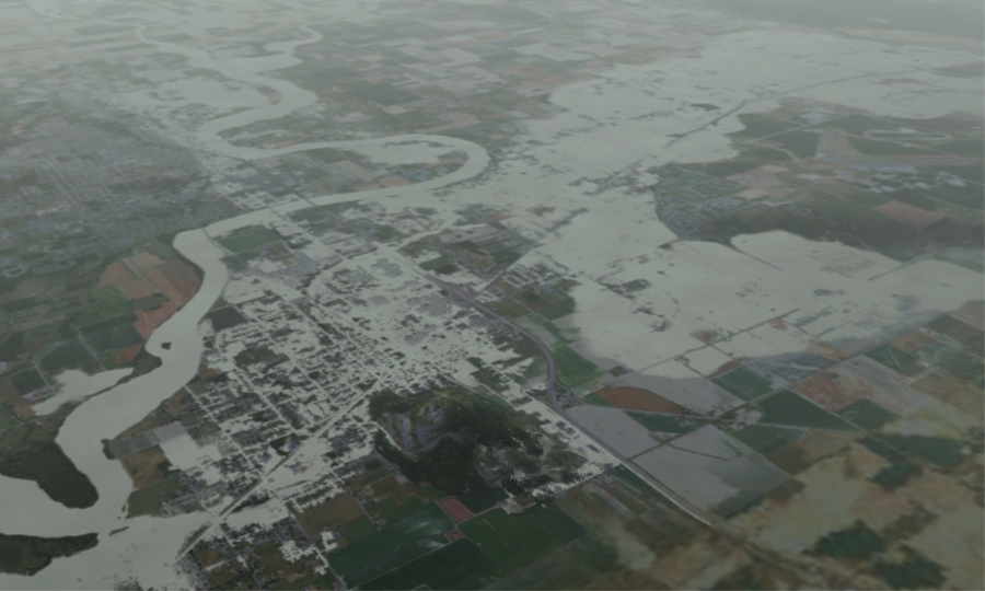 depiction of large flood event from Burlington to Mount Vernon to Padilla Bay