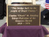 "On behalf of all of Chuck's family I thank the sponsors of today's event and everyone who took part in it. This is an especially unique honor in that it can be called permanent, or as permanent as any material award could be. It isn't going to be torn, lost, or tossed in a drawer. As long as this very substantial bridge stands, so will the name of Charles Dwelley on the plaques at either end. Whether the name ever supplants that of The Dalles, as the bridge is commonly known, remains to be seen.