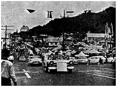 The following year the previously-planned Cascade Highway meeting and celebration sponsored by the Booster Club was taken over by the Eagles and the American Legion and boomed into a Logger’s Contest show with other attractions to entertain a big crowd. Carnival, parade, dances, and Queen contest, and sport features were standard. However, the most ambitious celebration over the years had such attractions as the first parachute jump in Concrete by Archie Griffiths, a local boy; a full-scale rodeo in which one performer was killed; professional acts and a wrestling show — plus airplane rides and numerous parachute jumps in which a woman participated; a Skagit River Canoe Race; Horse Show with drill teams; a hot-rod contest; a Canadian team playing cricket; a barbecued bear eating contest open to all (in which the committee had to pay a fine for getting a bear out of season).